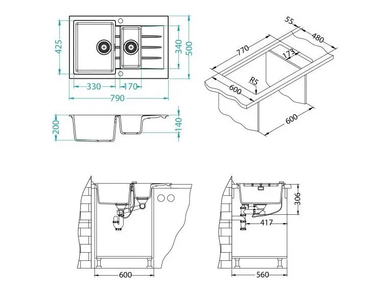 - afmetingen kleinere spoelbakken 170 x 340 x 140 mm