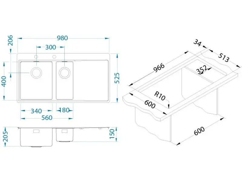 - afmetingen kleinere spoelbakken 180 x 400 x 150 mm