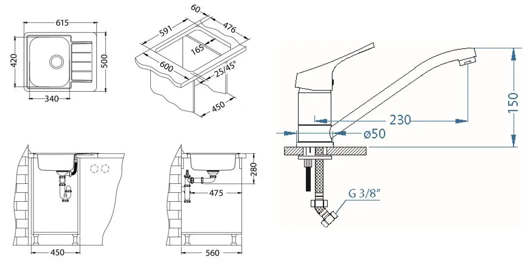 Set keukenspoelbak Line 110, kraan Riviera en cadeau