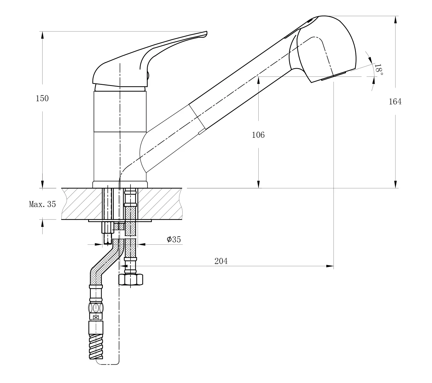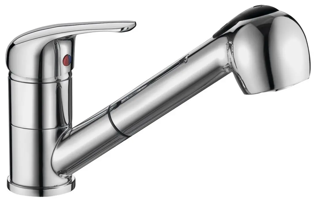 Deze kraan is ontworpen als een hendelmengkraan en is daarom waterbesparend. Het is een standmengkraan, dus ontworpen om direct op de spoelbak of op het aanrecht te installeren. Hij is gemaakt van messing en is verchroomd, waardoor het oppervlak glad en glanzend is. De hoogte van deze kraan is 164 mm, de lengte van de arm is 204 mm en de diameter van de cartouche is 40 mm. De vuistdouche kan tot 50 cm uitgetrokken worden, wat het makkelijk maakt om zelfs grotere pannen of kommen, borden of gewoon vuil van de spoelbak te spoelen. Voor nog meer gemak biedt deze kraan de mogelijkheid om de waterstroom om te schakelen tussen 2 standen, douche en perlator. Er worden ook toevoerslangen meegeleverd.