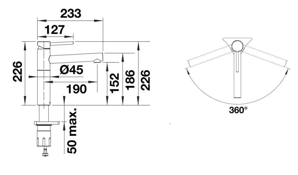 - kraanhoogte 226 mm