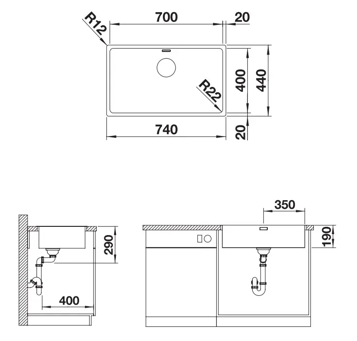 - totale afmetingen: 740 x 440 x 190 mm (LxBxD)