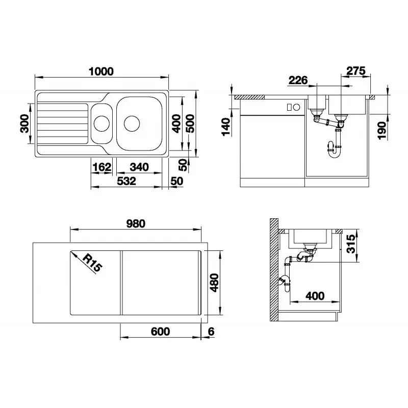 - oriëntatie spoelbak – dubbelzijdige uitvoering