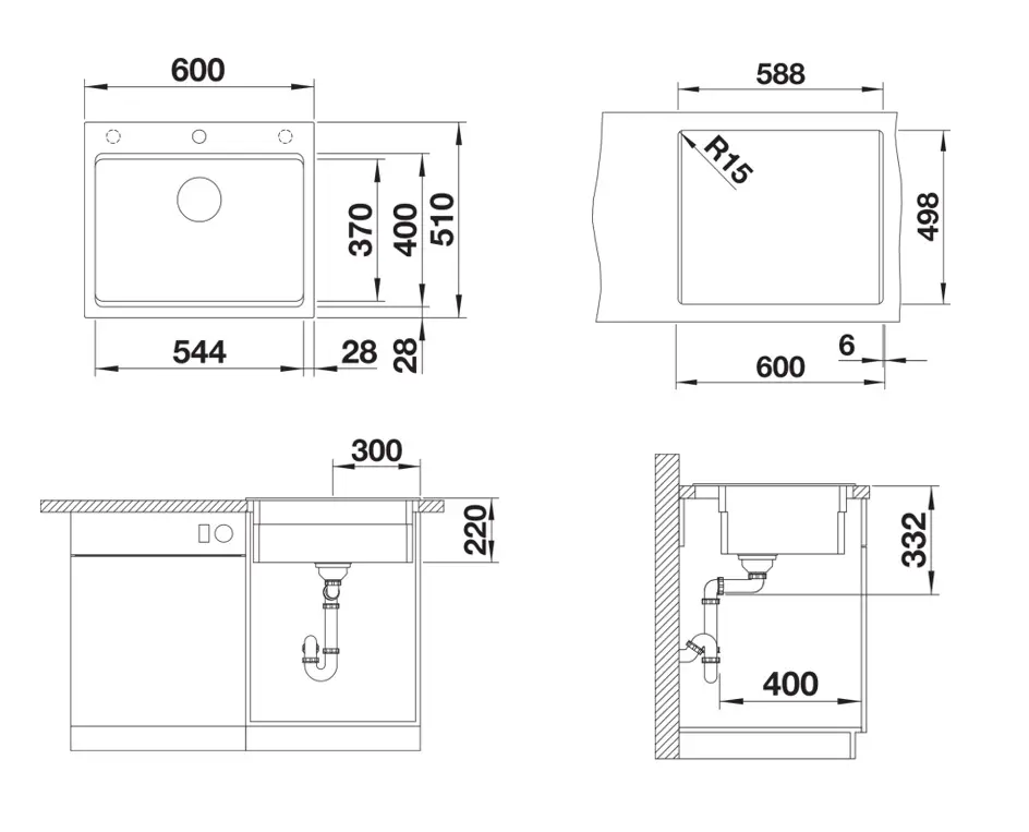 - afmeting spoelbak 544 x 400 mm