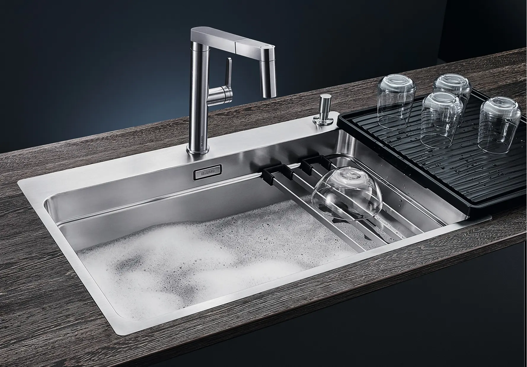 Dankzij het nieuwe ontwerp van de afvoerzeef is zowel handmatige als excentrische bediening mogelijk. Het systeem is eenvoudig te demonteren en te reinigen. Past zich perfect aan de bodem van de spoelbak aan.