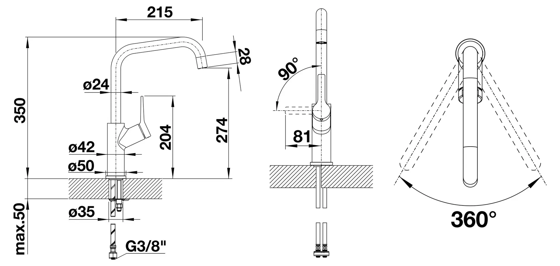 - geschikt voor installatie in een standaard gat met een diameter van 35 mm