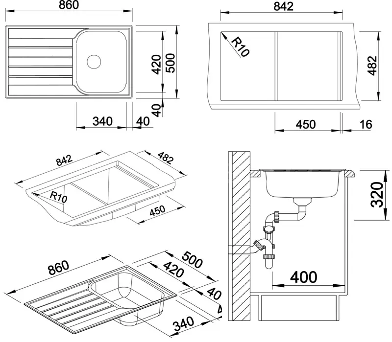 - oriëntatie spoelbak – dubbelzijdige uitvoering