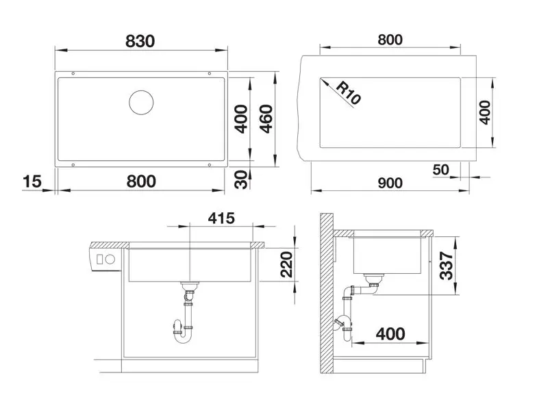 - afmeting spoelbak 800 x 400 mm