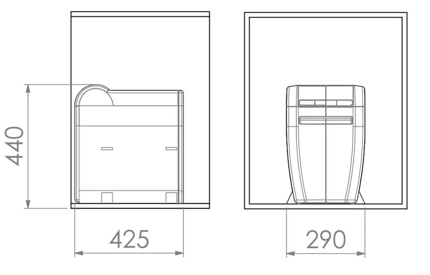 - afmetingen 440 x 425 x 290 mm