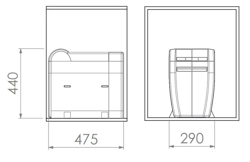 - box-rolluik voor gemakkelijkere toegang tot de manden (de manden hoeven er niet uitgetrokken te worden)