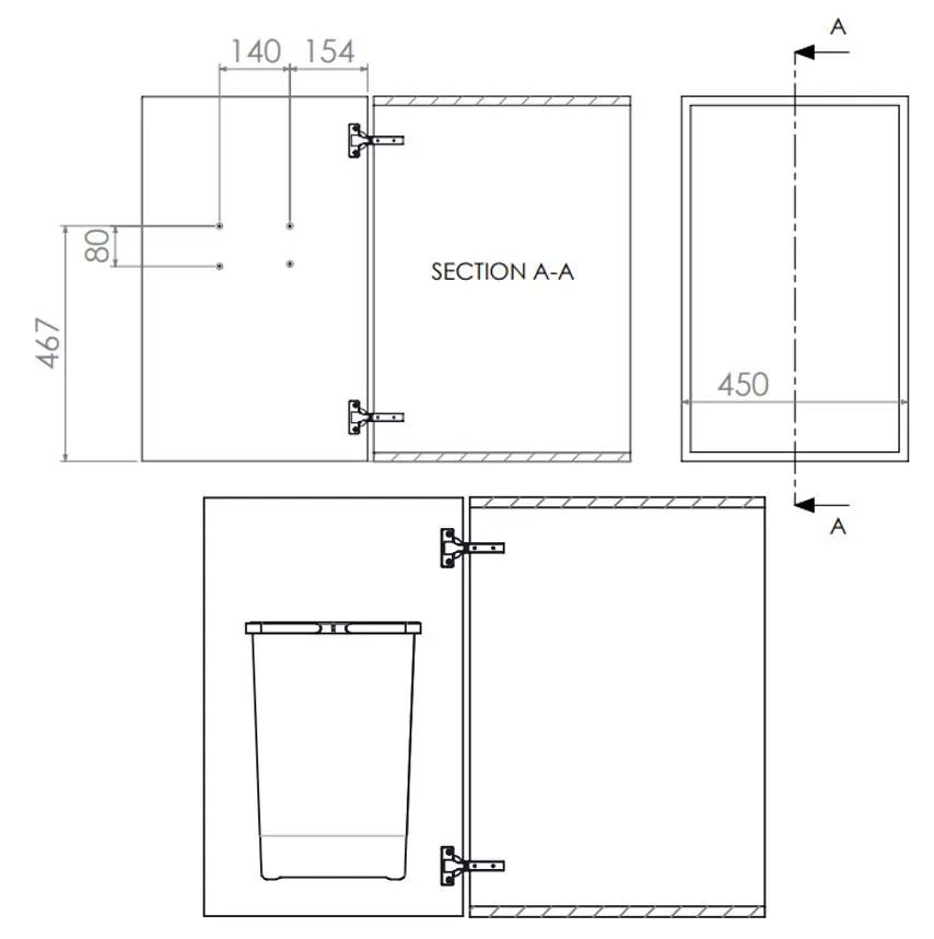 - installatie aan de binnenkant van de keukenkastdeur