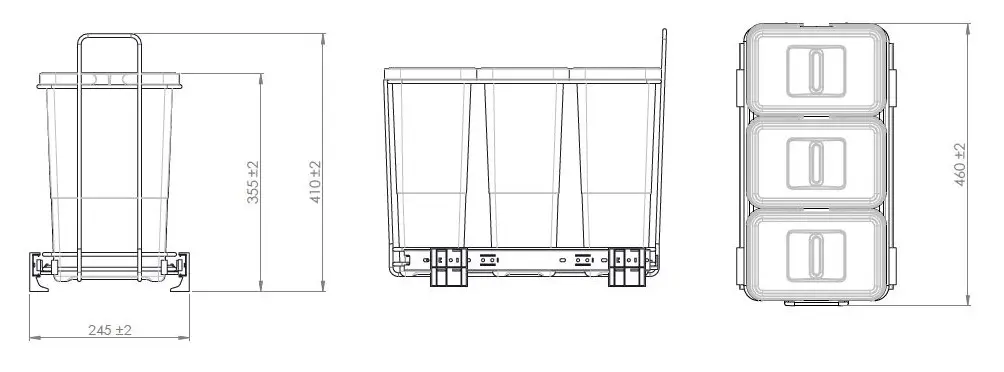 - 3 aparte containers – 8, 8 en 8 liter