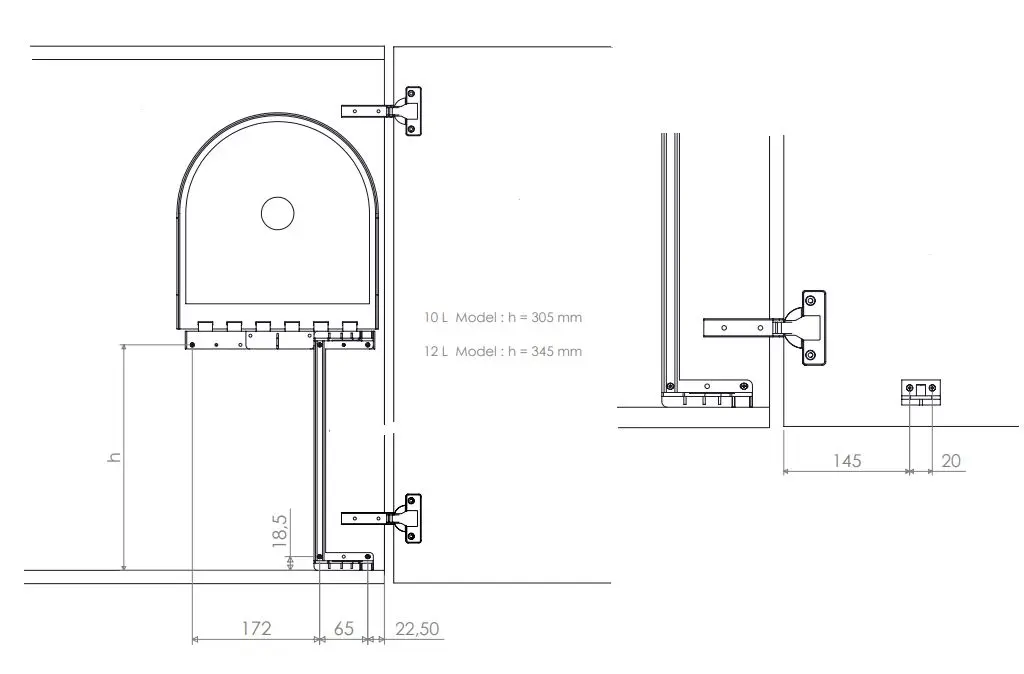 - installatie in de onderkast aan zowel de linker- als de rechterkant