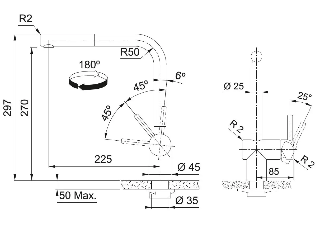 - kraanhoogte 297 mm