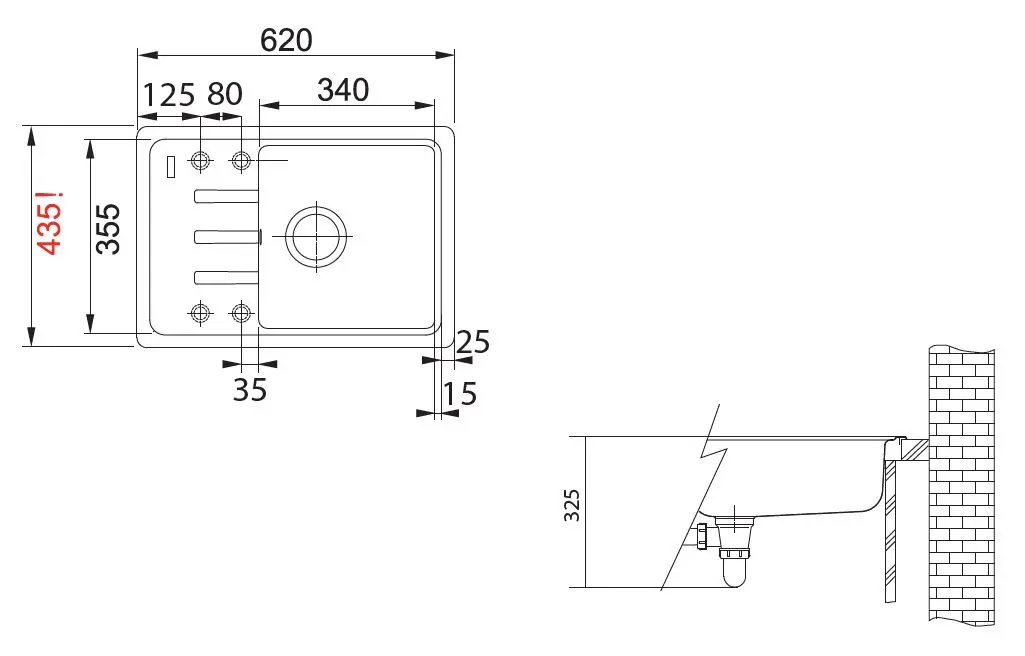 - afdruipgedeelte omkeerbaar, kan rechts en links worden geplaatst
