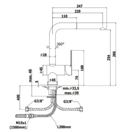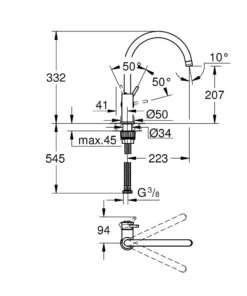 - Let op! Zonder opening voor de kraan (de opening kan direct tijdens de montage met een gatenboor uitgeboord worden)