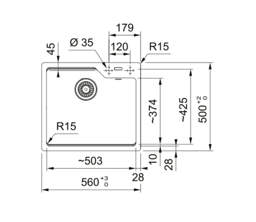 - spoelbak 230 x 503 x 425 mm (HxBxD)
