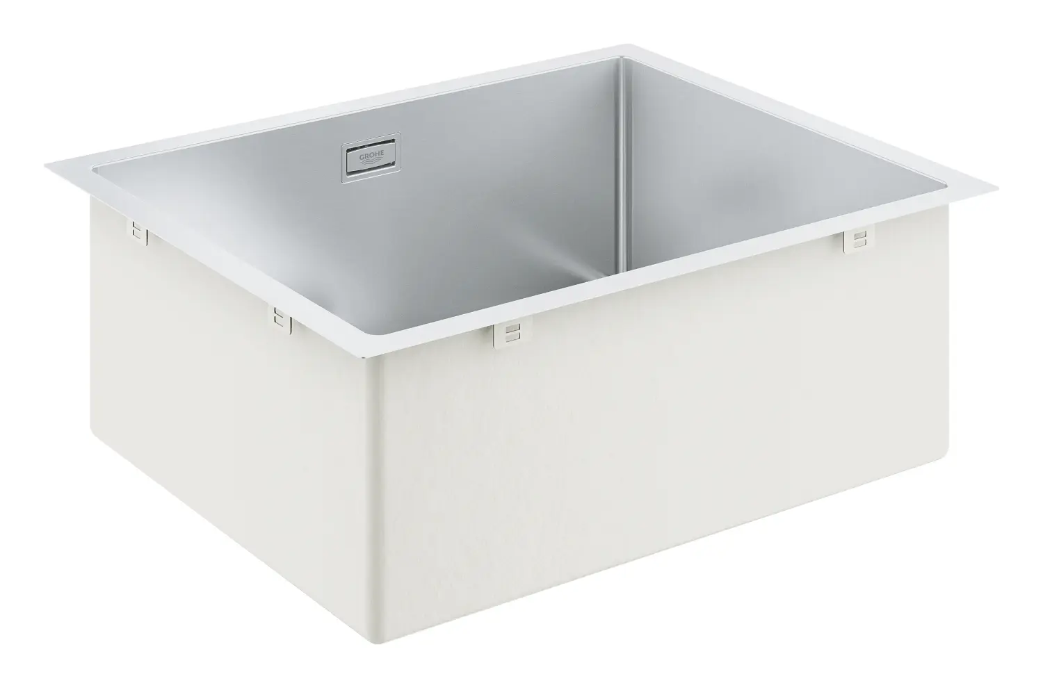 Pure geometrie in een roestvrij staal jasje: de GROHE K700 spoelbak zonder afdruipdeel is gemaakt van duurzame geborsteld roestvrij staal, waardoor het een eenvoudige, uniforme elegantie uitstraalt. De spoeltafel is namelijk 20 cm diep en 50 cm breed. Grote kookplaten afwassen, ruime potten afspoelen of hoge vazen vullen, alles wordt gewoon makkelijker. Wat de montage betreft, kun je namelijk zelf bepalen of je de spoelbak als onderbouw, opbouw of vlakbouw wil monteren.