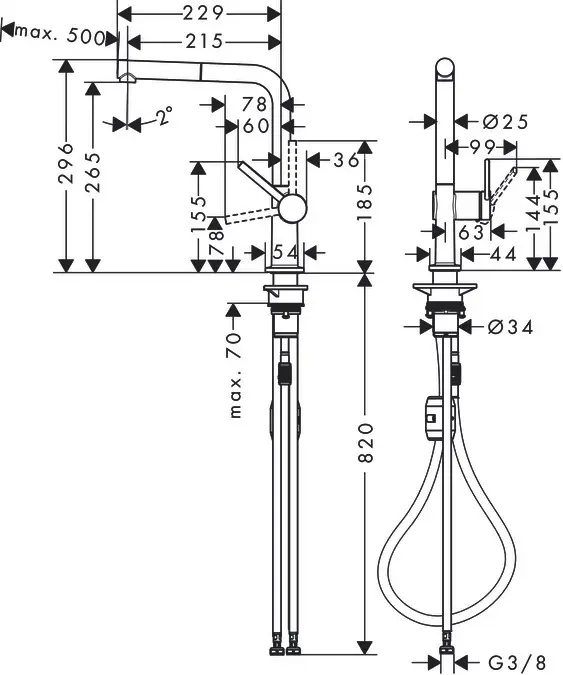 - montagewijze: aanvoerslang G 3⁄8