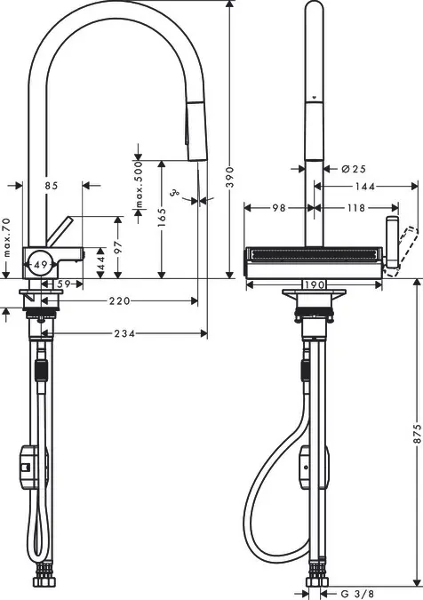 - montagewijze: aanvoerslang G 3⁄8