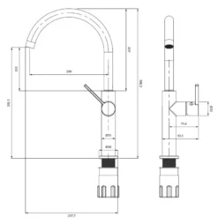 De kielle Wimeo keukenkraan maakt indruk met zijn unieke design. De industriële stijl wordt geaccentueerd door de glanzende chromen oppervlakken. De minimalistische lijnen passen bij zowel moderne als klassiek ingerichte keukens. Naast zijn mooie uiterlijk biedt de kraan ook een aantal praktische functies. Dankzij de hoge L-vormige uitloop kun je comfortabel werken in de spoelbak. Door de mogelijkheid om de uitlooparm te draaien, met een draaibereik van 360°, kan hij naast een dubbele spoelbak worden geplaatst, maar ook op een kookeiland. De kraan heeft ook het voordeel van eenvoudig en efficiënt onderhoud, zodat hij lang mooi blijft.